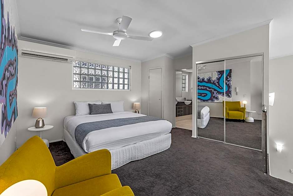 Spacious studio apartment with queen-size bed, separate living area, balcony, laundry facilities and fully equipped kitchenette with stove, dishwasher and convection microwave. It also offers a coffee machine with 2 complimentary coffee capsules.